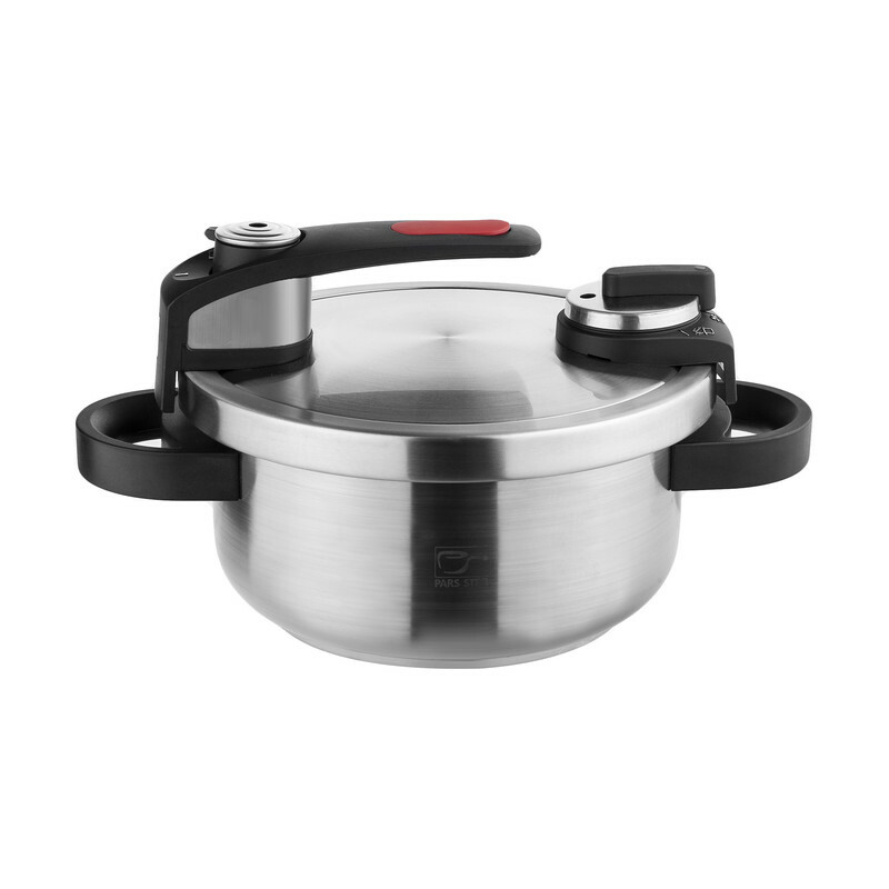 دیگ زودپز چهار لیتری پارس استیل (Pars steele) یکی از نمونههای خوب این نوع محصول است که از استیل ضدزنگ ساخته شده و کفهی آلومینیومی برای جلوگیری از چسبندگی و سوختن غذا دارد. این خاصیت به دلیل پخش یکنواخت حرارت در سطح دیگ، توسط کفی آلومینیومی است. از دیگر ویژگیهای خوب این محصول، ضدخشبودن بدنهی استیل آن است که سبب میشود موادغذایی به بدنهی آن نچسبد و ظاهر آن نیز سالم و براق بماند. یکی از ویژگیهای متمایزکنندهی این زودپز از دیگر نمونهها، وجود دو سیستم تخلیهی فشار است که حداکثر ایمنی را ایجاد کرده و از سوختن غذا هم جلوگیری میکند. این زودپز را برای شستوشو میتوان درون ماشین ظرفشویی نیز قرار داد. ابعاد کلی این محصول برابر با 23.5 × 35 × 11.5 سانتیمتر و وزن آن 2795 گرم است. همچنین لازم به ذکر است که این محصول دارای دو دسته از جنس باکالیت دارد که به شما این امکان را میدهد که بدون دستگیر آن را جابهجا کنید.