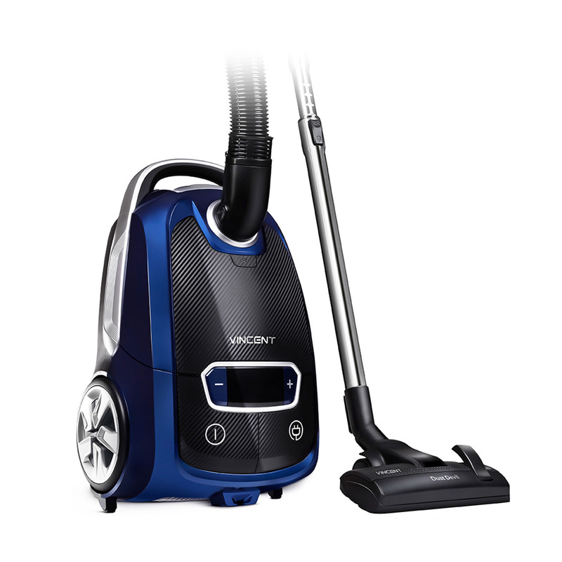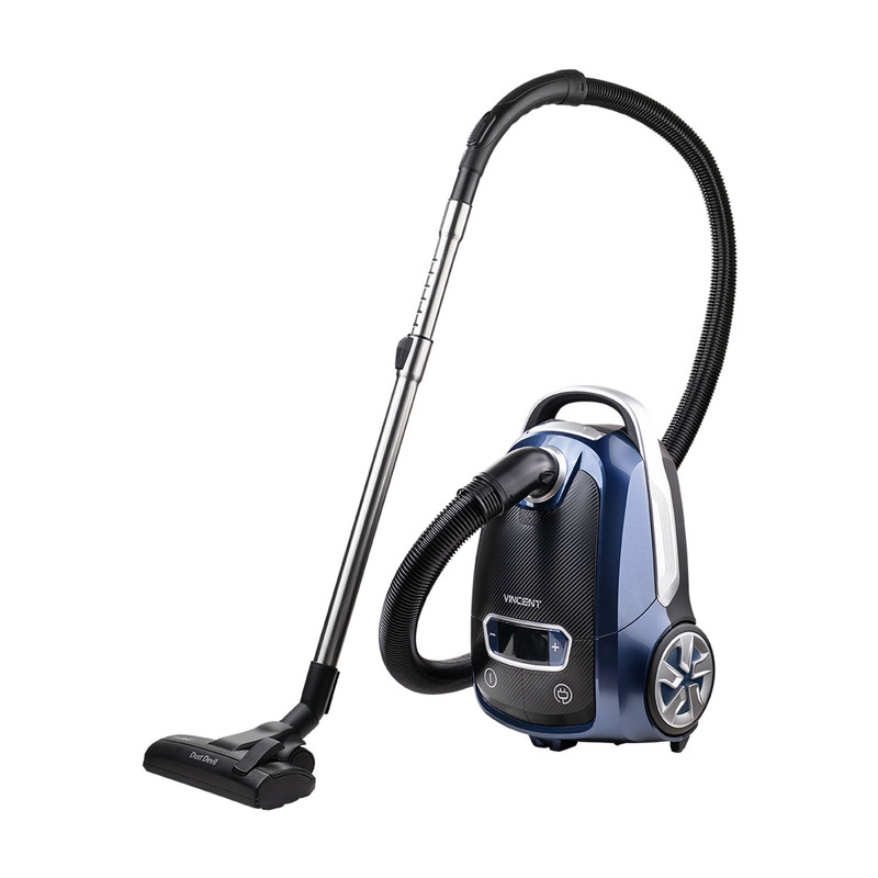 جاروبرقی وینسنت مدل FC7625/03 مجهز به صفحه نمایشگر دیجیتال بوده و با قدرت ورودی 2500 وات به محض شروع به کار، هیچ اثری از زباله و گرد و غبار باقی نمیزاره. با اینکه قدرت ورودی موتورش نسبت به مدلهای دیگه افزایش چشمگیری داشته، انتظار میره صدای بلندتری هم داشته باشه اما صدای خروجی اون مانند دیگر مدلهای جاروبرقی وینسنت همچنان کمتر از 80 دسیبل هست. این جاروبرقی مجهز به نشانگر تعویض کیسه بوده و قدرت مکش اون حتی در زمان نیمهپر بودن پاکت هم کم نمیشه و به راحتی میتونه با همین قدرت، مکش رو ادامه بده. این محصول مجهز به فیلتر هپا ۱۳ هستش که یکی از پرطرفدارترین و کاربردیترین فیلترهای تصفیه هوای خروجی از جاروبرقی هاست. این فیلتر با ساختاری فشرده، ذرات کوچک جمع آوری شده از محیط رو به دام میندازه. هپا 13 علاوه بر پاکسازی هوای خروجی از جاروبرقی، نقش مهمی درعملکرد دستگاه و قدرت مکش اون داره. مخزن 6 لیتری این جاروبرقی میتونه مقدار نسبتاً زیادی زباله را جمعآوری کنه. درصورتیکه مخزن در حال پر شدن باشه، از طریق نشانگر به شما اطلاع داده خواهد شد. سیم برق در این مدل 5 متر هستش و امکان جارو کردن فضای زیادی را تا 8 متر فراهم میکنه.