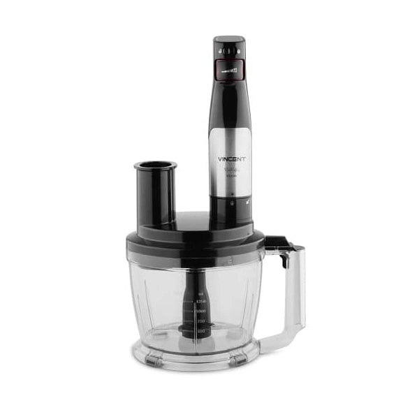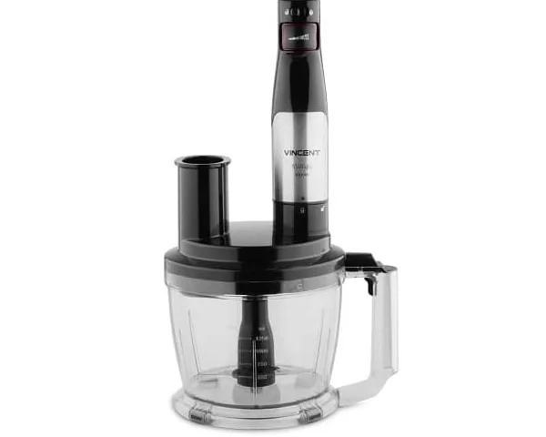 با اتصال دسته اصلی به ظرف مخلوط کن امکان مخلوط کردن مواد غذایی، هم زدن و رنده کردن نیز پیدا می کند. تیغههای مختلف و دیسکهای رنده امکان تهیه مواد خرد شده مختلف با سایز و شکلهای متنوع را ایجاد میکند. گوشتکوب برقی وینسنت مدل 7610، دارای سرعت توربو نیز است که میتواند در سرعت زیاد فعالیت را ادامه دهد. ظرف خردکن دارای پایههای ضد لغزش است تا هنگام فعالیت، لغزش و حرکتی ایجاد نشود. برند وینسنت مدتی است که با عرضهی محصولات باکیفیت در بازار لوازمخانگی برقی فعالیتی پرقدرت دارد و طرفداران زیادی پیدا کرده است.